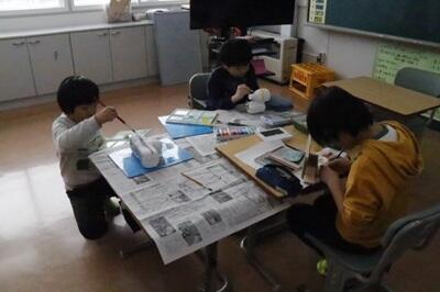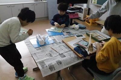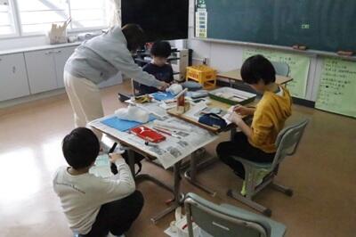 3年生:「空きようきのへんしん」~紙粘土を使った工作 4年生:「きって楽しい、きっと使える」~木を使った工作 をしました。