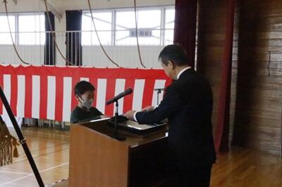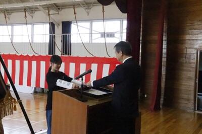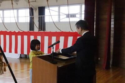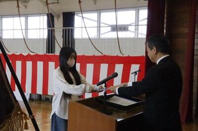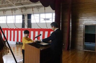 令和7年度修了式が行われ、一人ひとり修了証が手渡された後、頑張ったことを発表しました。